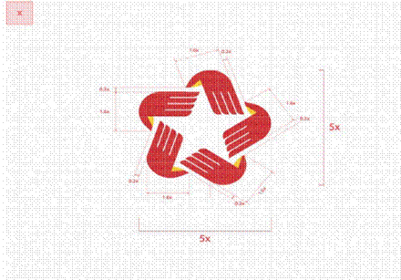 - Phần biểu tượng (symbol): Coi x là 01 đơn vị thiết kế tiêu chuẩn. Tạo hình tổng thể thể hiện các tỉ lệ hình ảnh theo x.