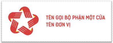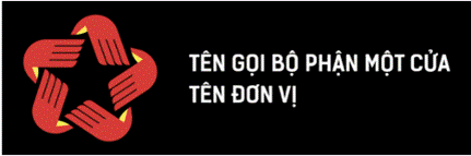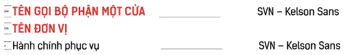 Phần chữ sắp xếp từ trên xuống dưới theo thứ tự: Tên Bộ phận Một cửa, tên đơn vị, khẩu hiệu. Phần tên Bộ phận Một cửa và tên riêng đơn vị được viết hoa toàn bộ, sử dụng font SVN-Kelson Sans Bold và cùng cỡ chữ. Phần khẩu hiệu “Hành chính phục vụ” sử dụng font SVN-Kelson Sans Regular.