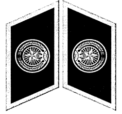 c) Biểu tượng khiên và cành tùng bằng kim loại trên nền cấp hiệu: