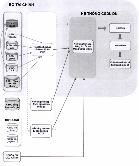 Trên cơ sở lấy CSDLQG về ĐKDN làm nền tảng, tích hợp, chia sẻ có chọn lọc các dữ liệu từ các hệ thống thông tin và nguồn khác nhau, bao gồm: