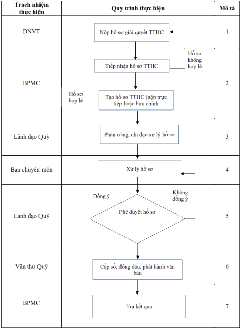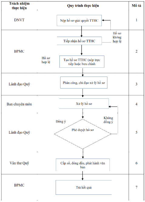 - Lãnh đạo Quỹ có ý kiến chỉ đạo, sau đó chuyển hồ sơ cho Ban chuyên môn xử lý;